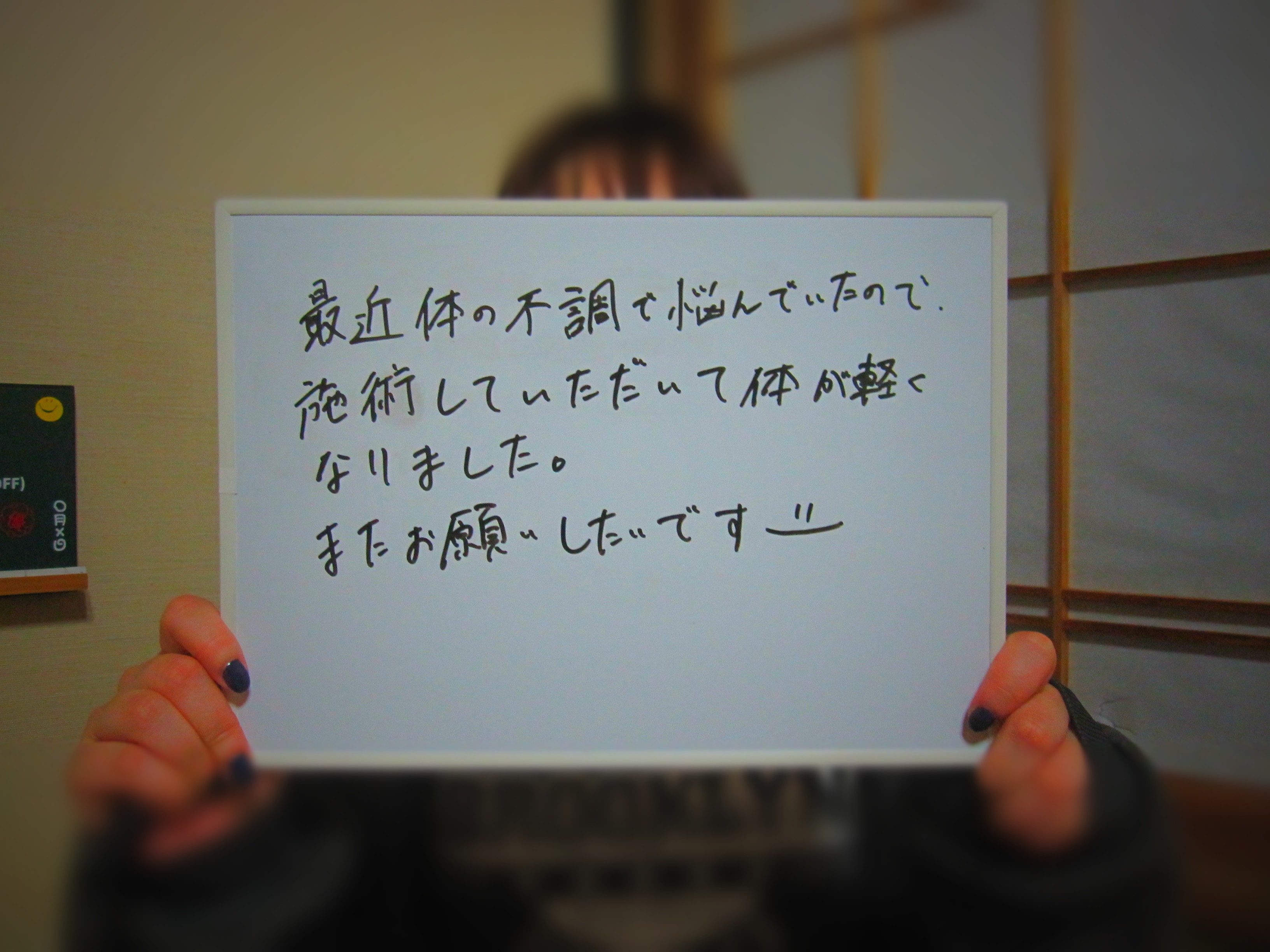 リラックスできて、とても落ちついて施術を受けることができました。