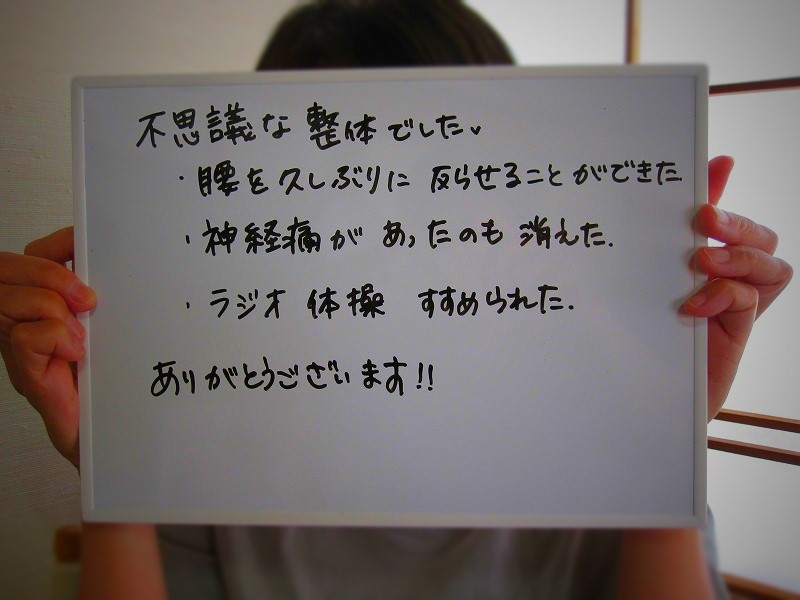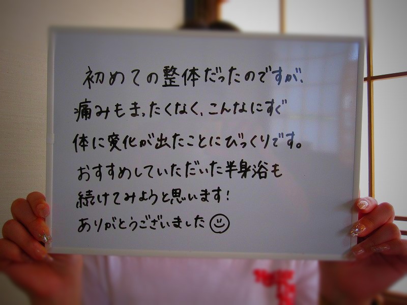 寒河江市 O.K様 首、肩の痛み、脇腹痛、腰痛 40代 女性